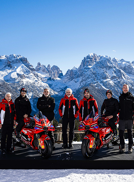 The 2025 Ducati Lenovo Team presented in grand style on the snows of the Dolomites: a record-breaking team with two extraordinary riders ready to give great emotions to fans.