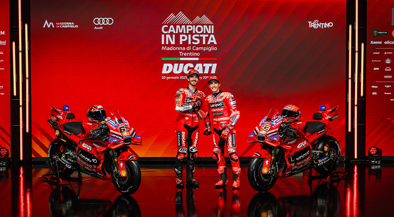 For the third consecutive year, Ducati’s racing season kicked off in the mountains of Madonna di Campiglio in Trentino with “Campioni in Pista”. The Bologna-based manufacturer chose the snows of the Dolomites to experience three days of sport, fun and getting together, and to present to the world the 2025 Ducati Lenovo Team, which will take part in the MotoGP season with two extraordinary riders: Francesco Bagnaia and Marc Márquez. A “Dream Team” that needs no introduction – with 11 World Titles on display – and which promises to be a great show for all fans throughout the season.