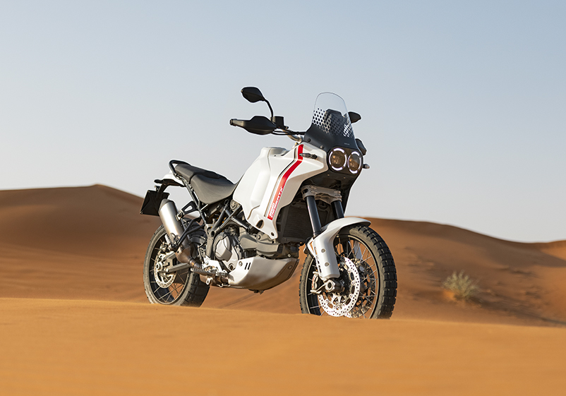 Equipped with a 21-inch front wheel and 18-inch rear wheel, the new DesertX is designed to handle even the most challenging off-road terrain. Dedicated off-road development combined with Ducati’s road expertise result in a responsive and maneuverable bike that is at ease on all types of trails and asphalt.