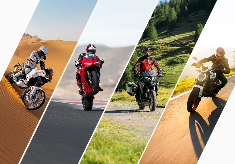 A complete range designed to meet every need: from touring to urban use, from off-road to the track. Whatever your riding style, there is a Ducati ready to accompany you.