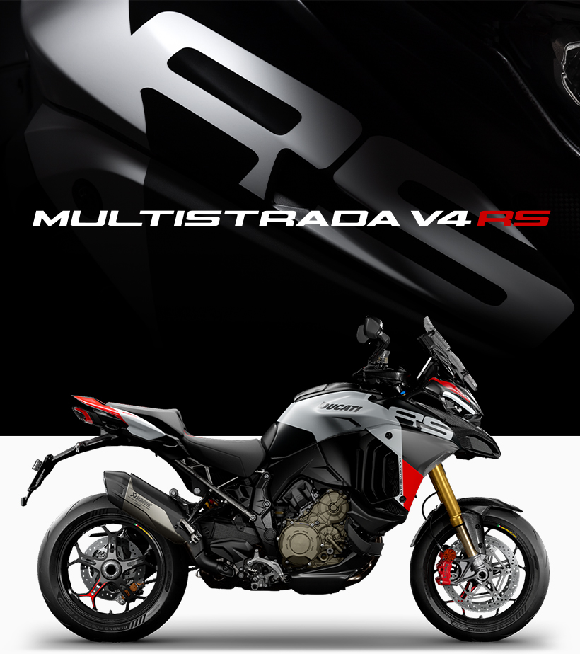 A Desmosedici Stradale engine like the supersport bikes, a dry clutch, dedicated electronic calibration for unbeatable performance in a numbered edition. The new Multistrada V4 RS is the sportiest, most sophisticated, and most distinctive in the family.