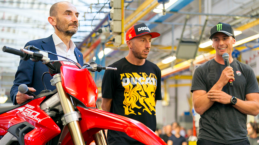“We looked around, searching for the important unique features of our corporate culture and finding what I believe characterizes Ducati like perhaps no other company: the closeness between the world of racing and that of production motorcycles,” says our CEO Claudio Domenicali. “And discovering, at the same time, that we have an incredible resource in-house in the form of many off-road enthusiasts in the various departments. All this has allowed us to present the Desmo450 MX: an easy and high-performance bike, for amateurs and professionals alike.”
