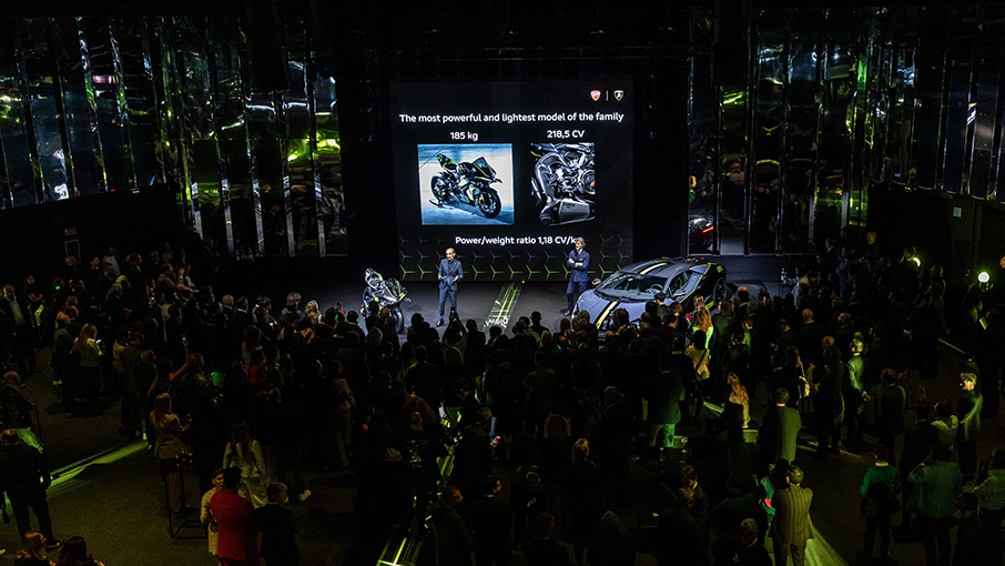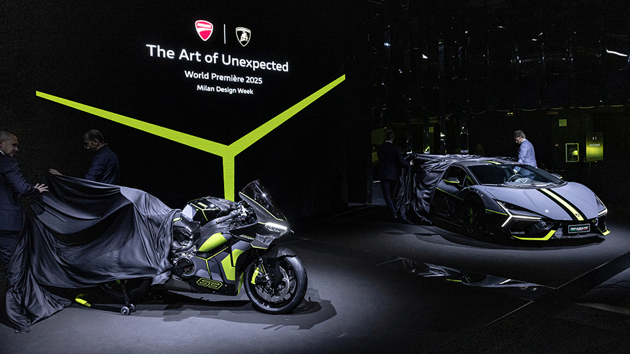 The new Ducati Panigale V4 Lamborghini, the motorbike born from the collaboration between the Italian motorcycle and super sports car manufacturers, has been unveiled to the public. The presentation event – The Art of Unexpected – took place in Teatro Alcione, Milan, during Milan Design Week, the leading event in the design world, where the two automotive companies excel.