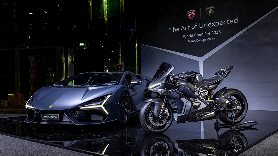 This new episode of the union between the two companies stars the most high-performance and sophisticated models in the ranges of the two brands: the Panigale V4 S, the latest generation Ducati Superbike; and the Lamborghini Revuelto, the new paradigm in the super sports car arena. Both models represent the ultimate expression of sporting performance of the two brands and are equipped with the most refined and high-performance engines, that fully represent their technical philosophy and design approach: the Ducati Desmosedici Stradale and the Lamborghini V12.