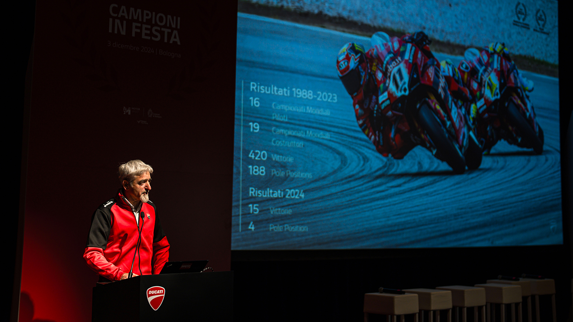 Tuesday 3 December was a memorable evening for the thousands of enthusiasts who gathered in Hall 29 of Bologna Fiere for the 2024 edition of “Campioni in Festa”: an event that for three seasons now has become a fixture of Ducati’s best sporting moment ever.