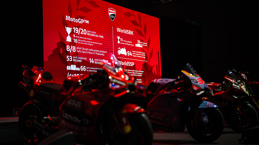 The evening was hosted by Barbara Pedrotti, who dictated the pace of the show, calling onto the stage all the main protagonists of the 2024 season, starting obviously with the CEO of Ducati, Claudio Domenicali, who underlined once again during his speech the effectiveness of the “Ducati System”, a special way of doing things characteristic of the Bologna-based Company, which has proven to be successful both in racing and in series production.