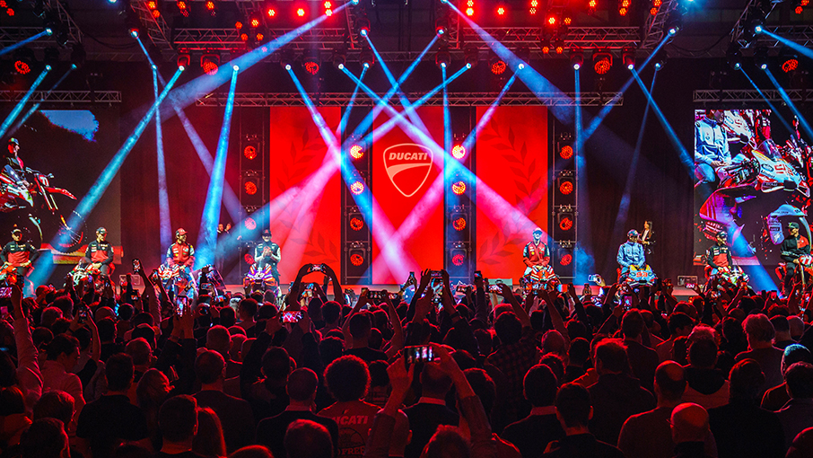 The celebratory event, free for the public, was preceded by an exclusive party for Ducati employees only, an opportunity to share and celebrate together a year of great results. The public segment of the show event got underway with a concert by the Ducati Band, a musical group formed over 20 years ago in the Company on the initiative of some employees including the current Technical Director of Ducati Corse Davide Barana in the role of guitarist, who warmed up the atmosphere with a performance full of rock & roll energy. Afterwards, the Italian comedian Paolo Cevoli provided moments of light-heartedness and laughter with his show, engaging the audience with his unmistakable style.