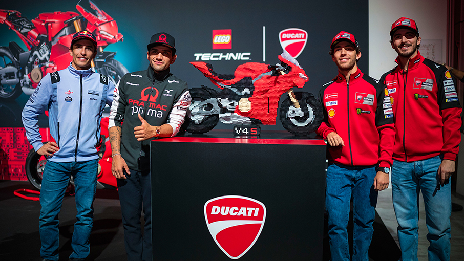 Also taking part in the celebration of this extraordinary racing season was LEGO®, with which Ducati recently presented the new Lego® Technic™ Panigale V4 S set. For the occasion, LEGO® exhibited a 1:2 scale model of the Panigale V4S made entirely of bricks, unveiled shortly before the show by the “Fantastic Four”. In addition, all the party participants were able to contribute to the creation of a shared work, reconstructing the logo of the Borgo Panigale company with LEGO® bricks.