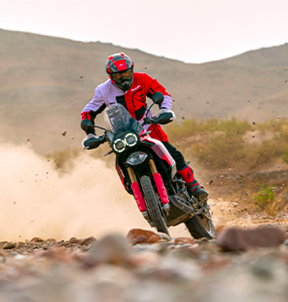 Born in the desert and raised off-road, the DesertX Rally is ready to accompany you on your most extreme adventures with its top-notch professional off-roading equipment.