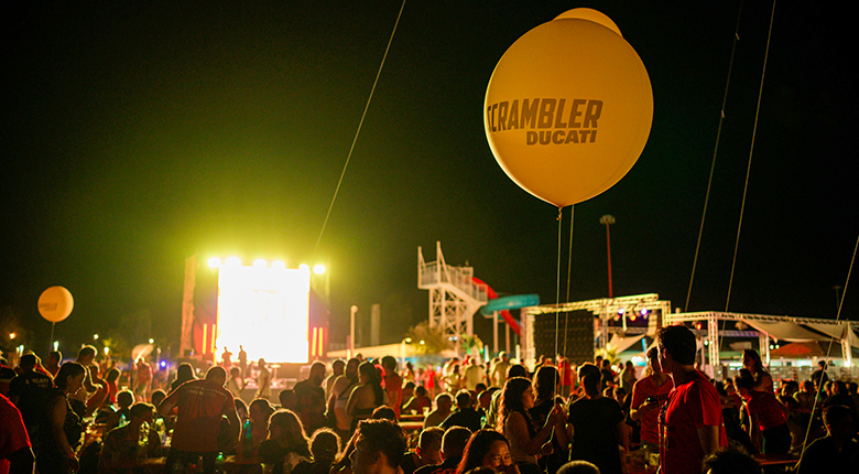 Evening entertainment is an integral part of the program of every World Ducati Week and even on the opening day the parade had a festive location as its arrival point: Samsara Beach in Riccione. Here the unmissable “Rustida” (Traditional BBQ) was held, served by Ducati managers, and then the “Land of Joy at the Beach” took place to celebrate 10 years of Scrambler Ducati.