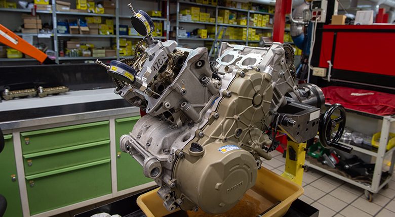 Ducati closely followed Motorrad’s test, witnessing the final dismantling of the bike at the Ducati Stuttgart workshop. Ducati technicians analyzed every internal component together with the editorial staff, confirming: