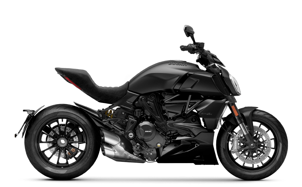 The Diavel 1260 S “Black and Steel” joins the S version in Thrilling Black & Dark Stealth colour with red frame and black wheels. The standard version is available in Dark Stealth colour with black frame and black wheels.